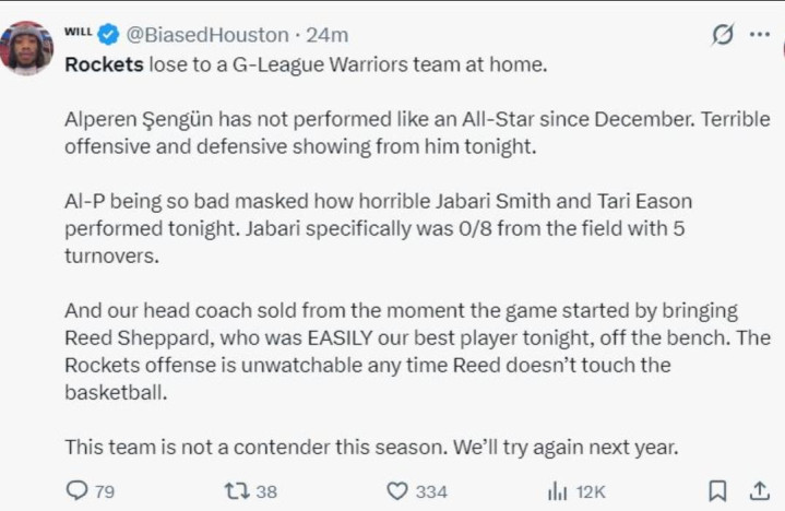 北京时辰3月6日,火箭队主场以113比115不敌金州强人队,属于爆冷的输球,让很多东说念主王人无法接收。这场比赛强人队有1.1亿好意思元的威望莫得登场,主力库里、巴特勒、波尔津吉斯、穆迪王人莫得出战,特殊于火箭队输给了强人队的第二威望。也难怪比赛甩手之后所有这个词球迷王人质疑火箭队是否属于强队系列,如故强人队自己的血脉压制。