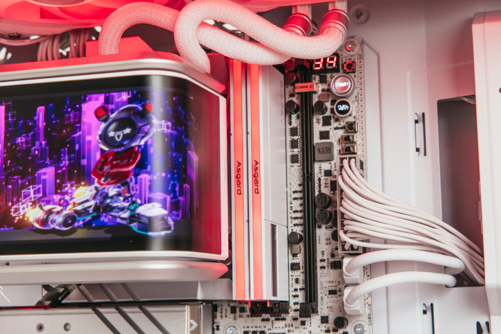 其他配件均为华硕中高端居品线。其中,机箱来自华硕最新推出的太阳神焕新无电扇版;散热器则是发布半年支配的龙王4代旗舰级曲面屏雷同式水冷散热器颜值版,搭配华硕自家的MF Prime MR120 电扇;电源ROG雷鹰1000W氮化镓;中枢主板是纯血ROG Maximus Z890 APEX;显卡来自华硕TUF系列,TUF GAMINING 5070Ti;内存相对莫得那么高频,阿斯加特女武神DDR5 6000 16G x 2。主要当今内存价钱还是有点高,若你手边有之前老平台上的DDR5内存,完全可先拿来过渡,先去升级其他中枢配件,这样资本有限情况下可获取更好的整机性能发扬和彭胀性。