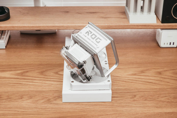 为了幸免视觉死角,冷头屏幕筹办成了可以支配滑动,界限较大,滑动支架作念工还是相比精细的,且框架的一侧还筹办了ROG的魔术贴荫庇,举座视觉成果很好。
