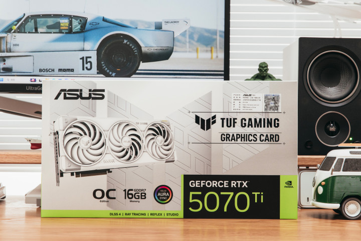 TUF GAMINING 5070Ti 显卡侧面特写。