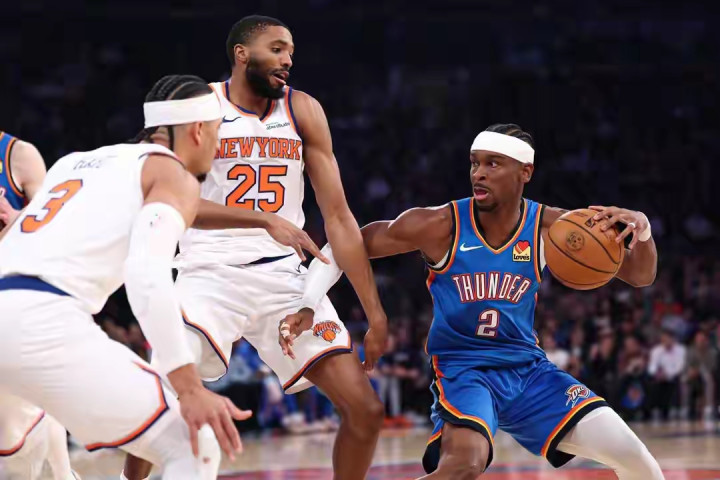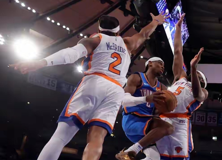 3月5日,雷霆前往麦迪逊花坛,客场树立尼克斯。这两支球队极有可能在本赛季总决赛见面,因此两边对抗强度班师拉满,亚历山大更是碰到了对方全场包夹的待遇,留心压力拉满。